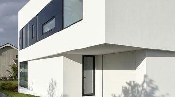 Oszczędna forma, bryły geometryczne i stonowana biało-szara kolorystyka to cechy wyróżniające Dom Trapez, projekt warszawskiej pracowni architektonicznej 81.waw.pl. Dom jednorodzinny, który tworzą dwa postawione na …